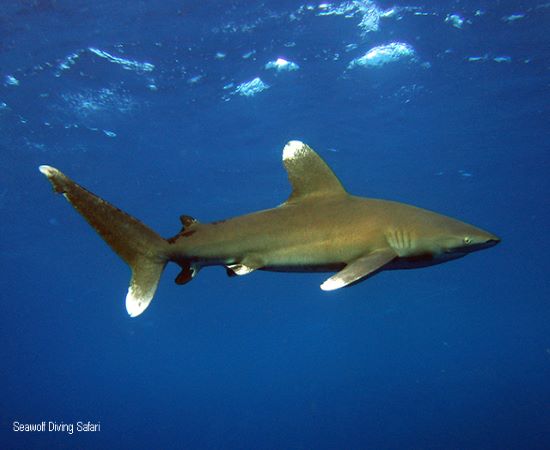 - Das spektakuläre Unterwasserleben hier, lohnt die lange Anfahrt allemal. Die Riffwände bersten vor Leben: Riesige Fächer- und Weichkorallen, Höhlen und Überhänge gehören ebenso dazu wie der im nördlichen Roten Meer vorkommende Buckelkopf-Papageienfisch mit bis zu 1,80 Meter Länge! Bis zu acht verschiedene Haiarten wie Fuchshai, Schulen von Hammerhaien, Tigerhaie und sogar Longimani werden hier regelmäßig gesichtet. Herrlich bewachsene Riffdächer mit viel „Kleinzeug“ sorgen für Abwechslung zu den spektakulären „Blauwasser-Tauchgängen“!